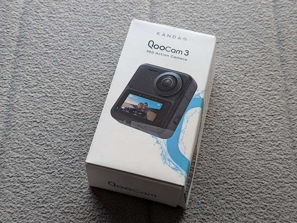 QooCam 3 採用極簡主義的設計,外型上接近正方形,方便攜帶。機身由高強度塑料製成,質感不錯。機身前後各有一個180度魚眼鏡頭,可拍攝完整360度全景影像。產品包裝內附有USB-C充電線,說明書和保護袋。