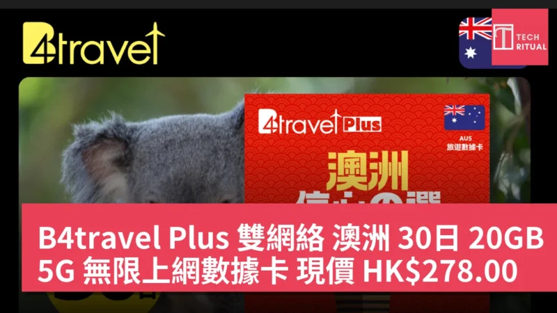 B4travel Plus 雙網絡 澳洲 30日 20GB 5G 無限上網數據卡 現價 HK$278.00