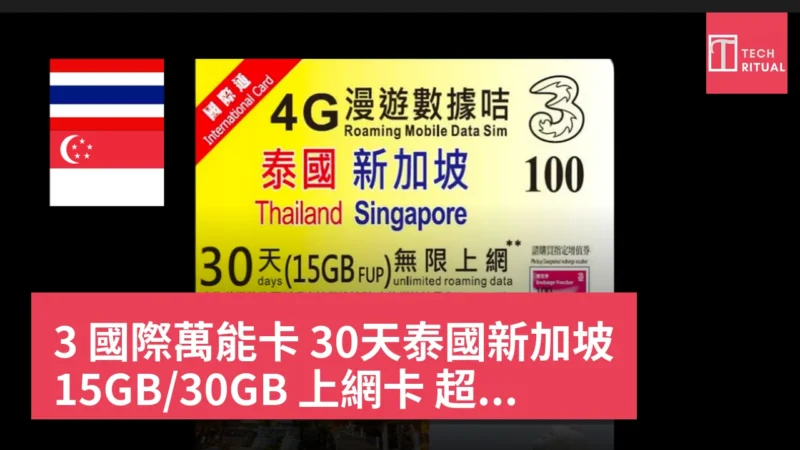 3 國際萬能卡 30天泰國新加坡 15GB/30GB 上網卡