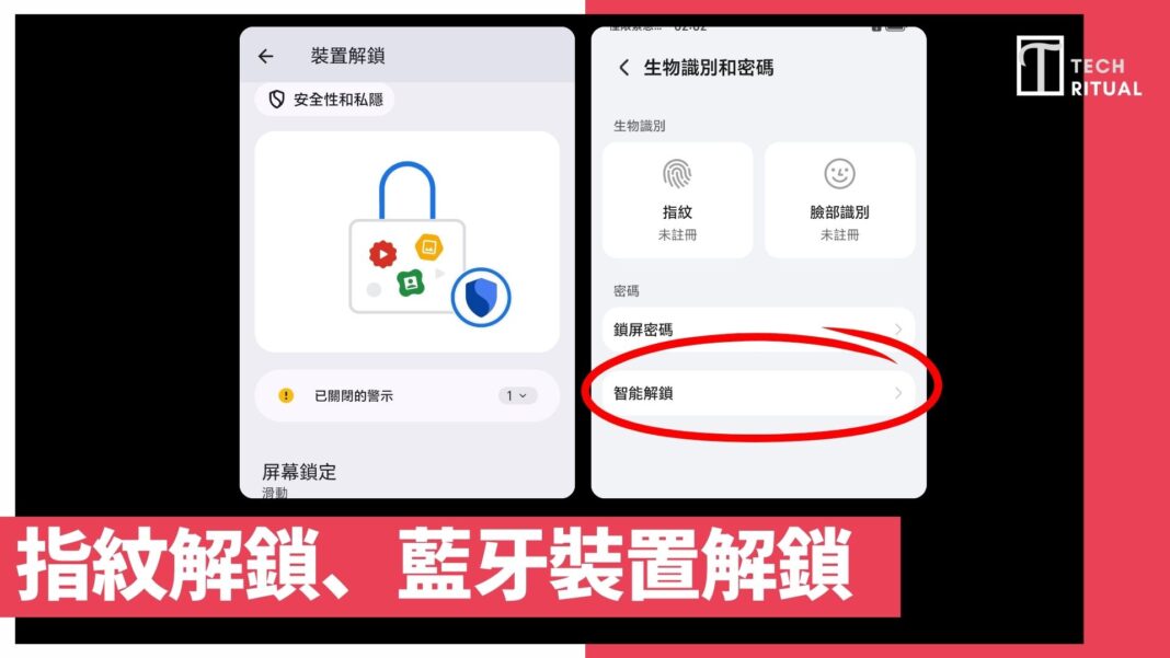 生物辨識解鎖、藍牙裝置解鎖