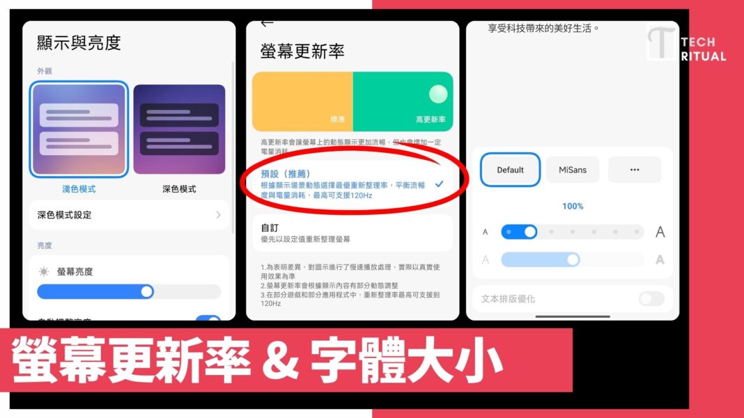 功能位置: 設定 > 顯示與亮度 > 螢幕更新率