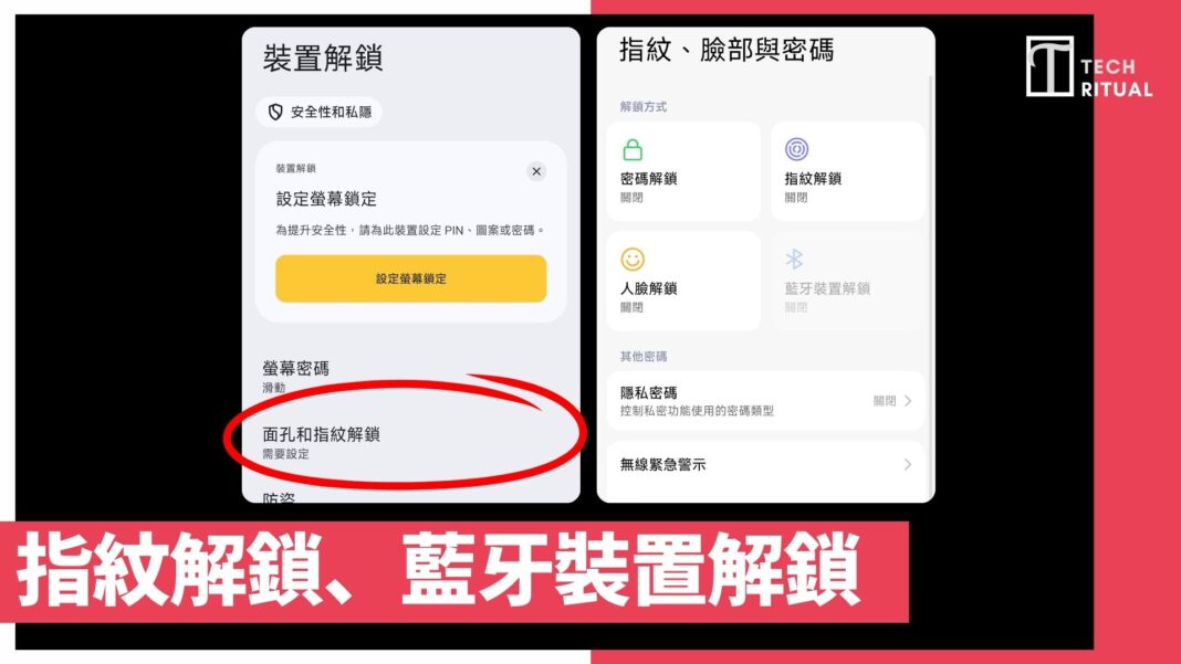 生物辨識解鎖、藍牙裝置解鎖