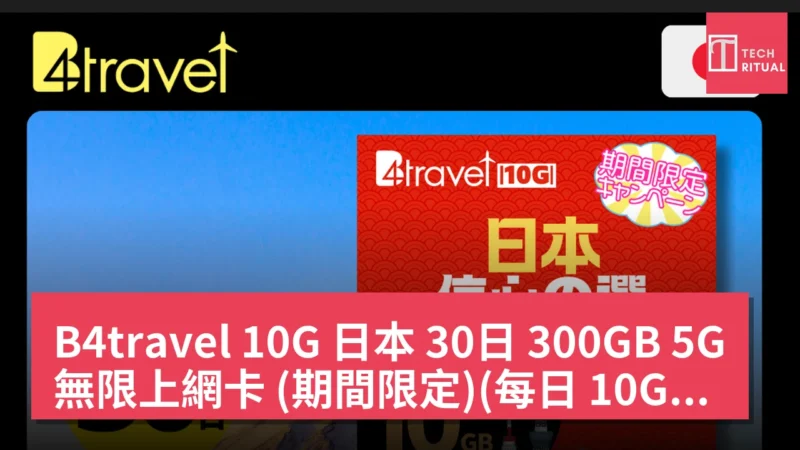 B4travel 10G 日本 30日 300GB 5G 無限上網卡 (期間限定)(每日 10GB)