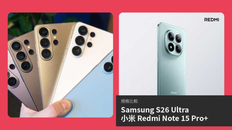 【手機比較】Samsung S26 Ultra 與 小米 Redmi Note 15 Pro+:規格表、效能、攝影功能