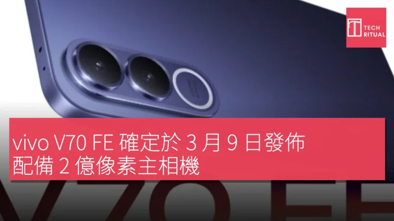 vivo 確認 V70 FE 將於 3 月 9 日在印尼首發,並通過社交媒體發布了相關消息。vivo 還證實該手機將配備雙後置相機系統,主攝像頭為 2 億像素的傳感器。此外,該公司還展示了手機的設計,包括纖薄的顯示屏邊框和顏色選擇。