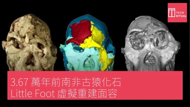 在南非發現的最完整的南方古猿化石「小足」(Little Foot)現在擁有了一個虛擬的面孔。這具化石於1990年代被發現,但古人類學家 Ron Clarke 和他的同事們花了近二十年的時間才將這具366萬年的化石完全挖掘出來。儘管其頭骨幾乎完好無損,這在如此古老的化石中極為罕見,但部分面部的碎片卻使得研究變得複雜。為了避免對化石造成進一步的損傷,研究人員選擇了虛擬重建的方法。