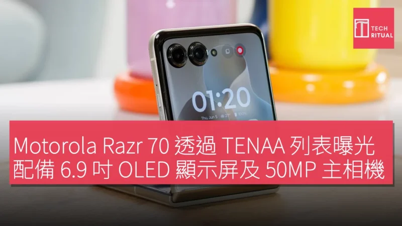 Motorola Razr 70 和 Razr 70 Ultra 預計將於未來幾周發佈。在其即將登場之際,基本型號已在中國的 TENAA 認證網站上出現,顯示其主要規格。Razr 70 在 TENAA 上的型號為 XT2657-2,配備 6.9 吋 OLED 顯示屏,解析度為 1080 × 2640 像素,還有一個 3.63 吋 OLED 蓋屏,解析度為 1056 × 1066 像素。