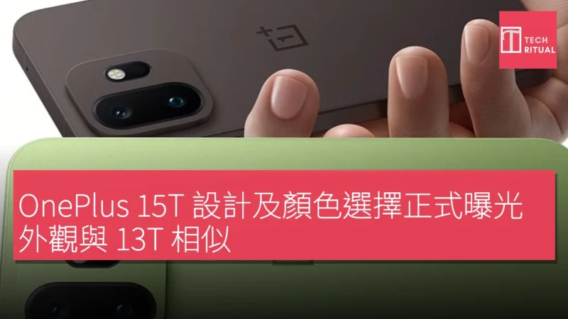 這款手機配備了一個雙後置相機組合,位於左上角的模組內,並採用磨砂背面設計。預告片還透露,OnePlus 15T 將提供全新的綠色和棕色選項。根據官方資訊,OnePlus 15T 確定配備 6.32 吋 AMOLED 顯示屏,邊框纖薄,並升級了潛望式長焦相機,搭載 3D 超聲波指紋掃描器,電池容量達 7,500mAh,防塵防水等級可達 IP69K。