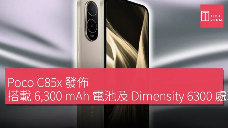 Poco C85x 是 Poco C 系列中的最新款手機,配備了 6,300 mAh 的大容量電池,起售價格為印度 10,999 印度盧比(約 HK$ 1,148)。這款設備搭載了一塊 6.9 吋 HD+ 120Hz IPS LCD 顯示屏,並設有一個 8 百萬像素的前置自拍鏡頭。後置相機方面,則配備了一個 3,200 萬像素的主鏡頭,以及一個未具名的輔助鏡頭。