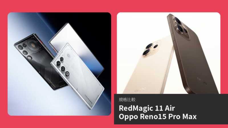 | 項目 | RedMagic 11 Air | Oppo Reno15 Pro Max |
