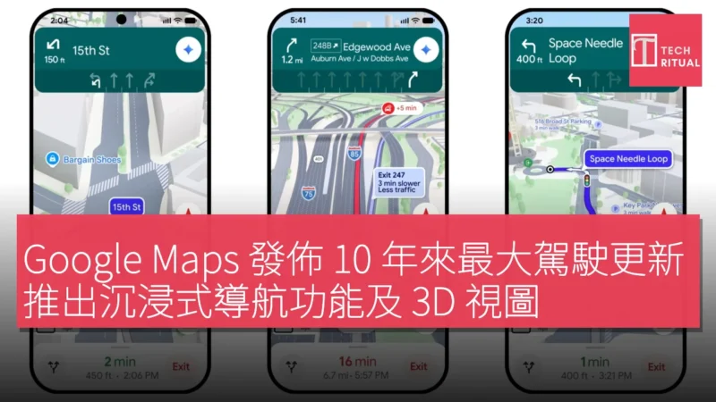 Google Maps 正在對其駕駛體驗進行十多年來最大的一次更新,推出名為 Immersive Navigation 的功能,重新設計了視覺效果,並提供更直觀的導航指引。此功能首先提供一個生動的 3D 視圖,能夠反映周圍的建築、立交橋和地形。Google Maps 將高亮顯示車道、人行道、交通信號燈、停止標誌及其他重要的道路細節,以幫助駕駛者自信地進行轉彎或變道。