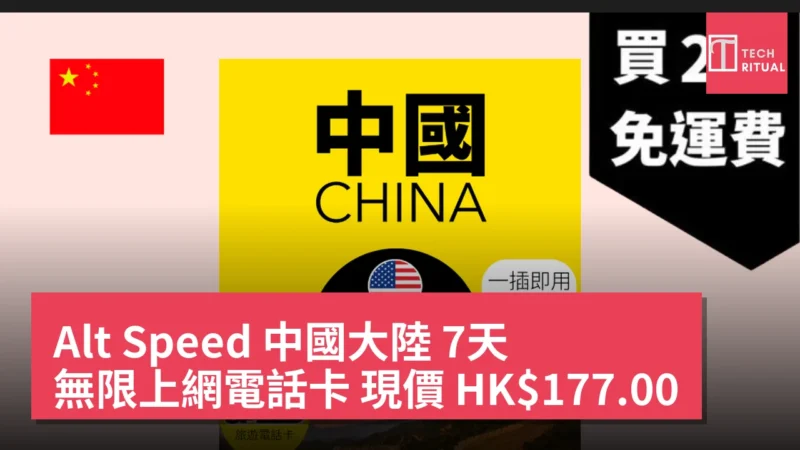 Alt Speed 中國大陸 7天 無限上網電話卡