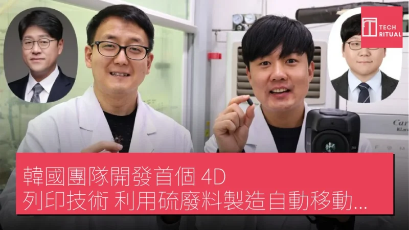 團隊由韓國化學技術研究院(KRICT)的金東均博士、漢陽大學的鄭在煒教授和世宗大學的金永錫教授領導。4D 列印與傳統 3D 列印最大的區別在於時間的元素。傳統的 3D 列印製作靜態物體,而 4D 列印則能在列印後,根據外部觸發改變形狀或行為。KRICT 團隊開發了一種新型的富硫聚合物,稱為聚(苯並聚硫)網絡(PSNs),這些材料具有形狀記憶特性,能根據玻璃轉變溫度調整形狀。