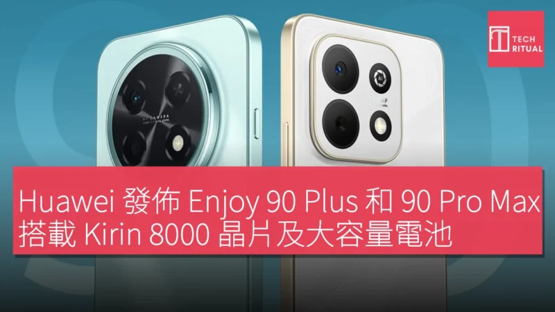 華為今天在中國發佈了其全新的 Enjoy 90 系列,包括 Enjoy 90 Plus 和 Enjoy 90 Pro Max 兩款手機。這兩款手機均搭載華為自家的 Kirin 8000 處理器,配備更大的電池及 HarmonyOS 6.0 系統。