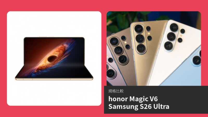 | 項目 | honor Magic V6 | Samsung Galaxy S26 Ultra |