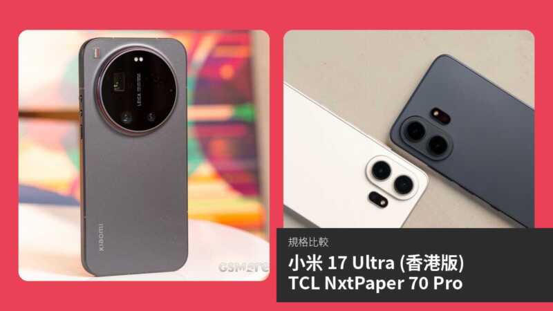 【手機比較】小米 17 Ultra (香港版) 與 TCL NxtPaper 70 Pro:規格表、效能、攝影功能