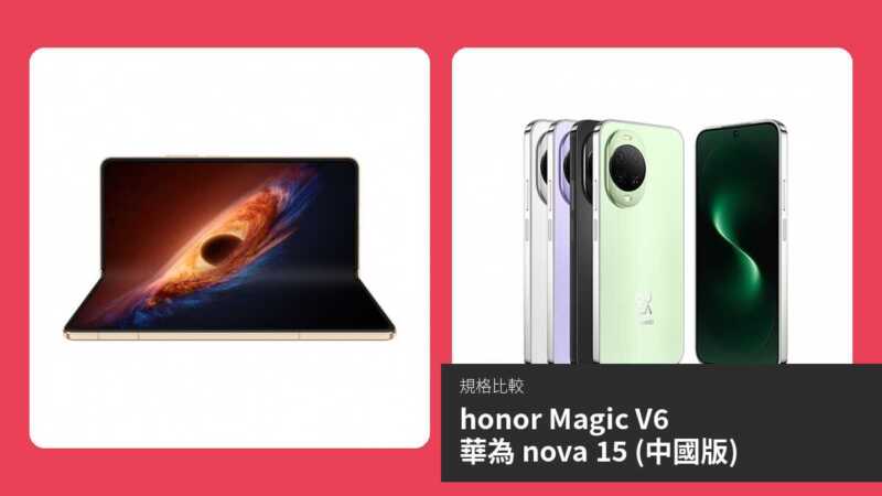 若預算充裕並喜愛創新形式,honor Magic V6 整體更強;反之,nova 15 提供更高性價比。最終選擇視個人需求而定。
