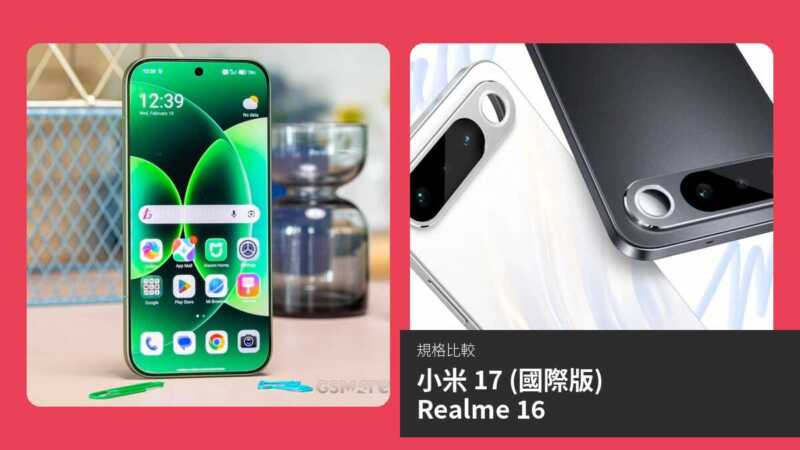小米 17 在連接速度、充電功率與音效更強;Realme 16 電池更大、防水等級更高、支援記憶卡,續航與耐用性佔優。