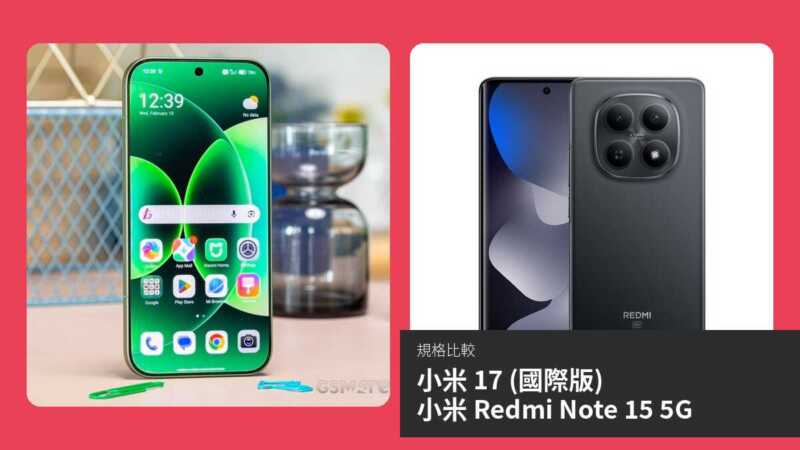 【手機比較】小米 17 (國際版) 與 小米 Redmi Note 15 5G:規格表、效能、攝影功能