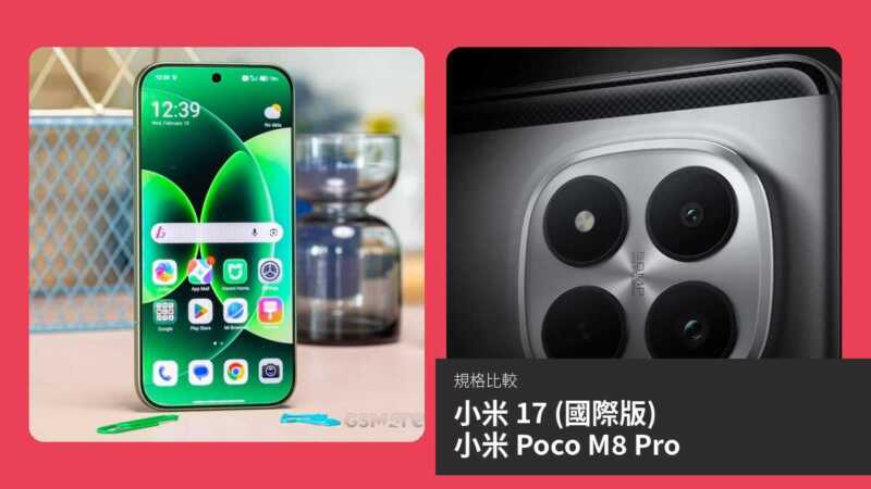 若整體表現優先,小米 17 更強;若注重性價比及特定需求如大屏,Poco M8 Pro 是實用選擇。建議根據使用習慣及預算決定。(約 1980 字)