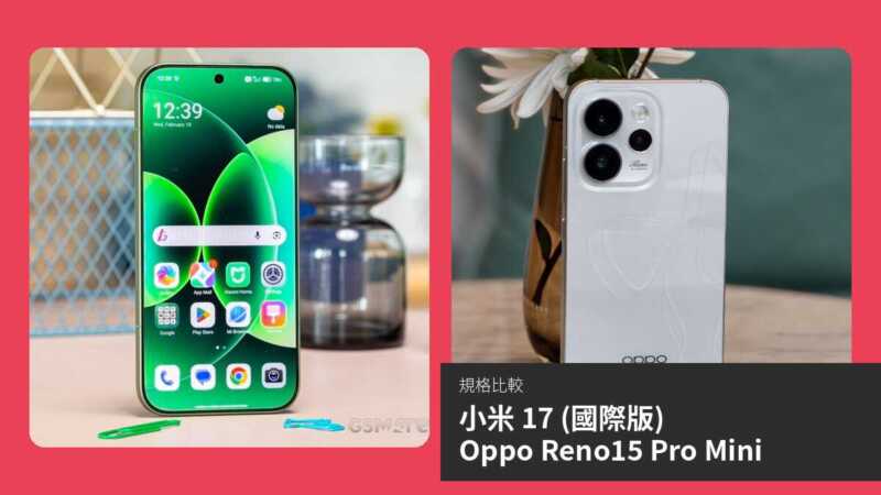 【手機比較】小米 17 (國際版) 與 Oppo Reno15 Pro Mini:規格表、效能、攝影功能