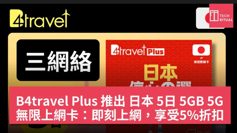 B4travel Plus 推出 日本 5日 5GB 5G 無限上網卡:即刻上網,享受5%折扣