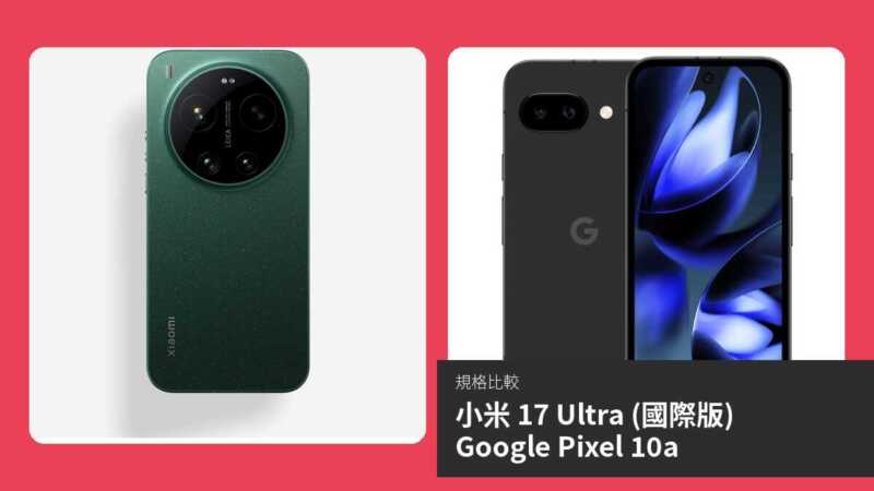 小米 17 Ultra (國際版) 與 Google Pixel 10a 均為 2026 年 3 月即將發佈的旗艦級智能手機,前者定位高端影像旗艦,後者則為中階 Pixel 系列續作。本文將透過規格對比與詳細分析,幫助讀者了解兩者在屏幕、效能、攝影及連接性等方面的差異,助你選擇最適合的機款。無論追求極致規格還是純淨 Android 體驗,這場比較將提供客觀洞見。