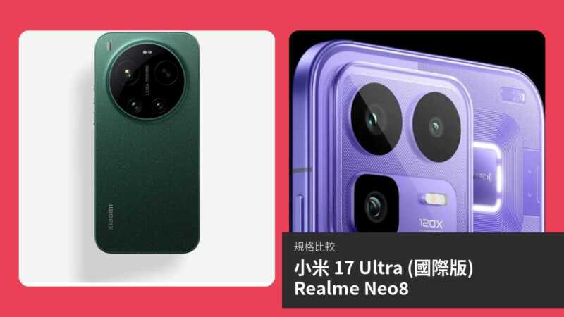 若重視攝影與旗艦效能,小米 17 Ultra 更佳;若追求電池續航及日常便利,Realme Neo8 勝出。兩機各有千秋,視用戶偏好而定。(約 1980 字)