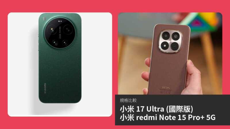 【手機比較】小米 17 Ultra (國際版) 與 小米 redmi Note 15 Pro+ 5G:規格表、效能、攝影功能