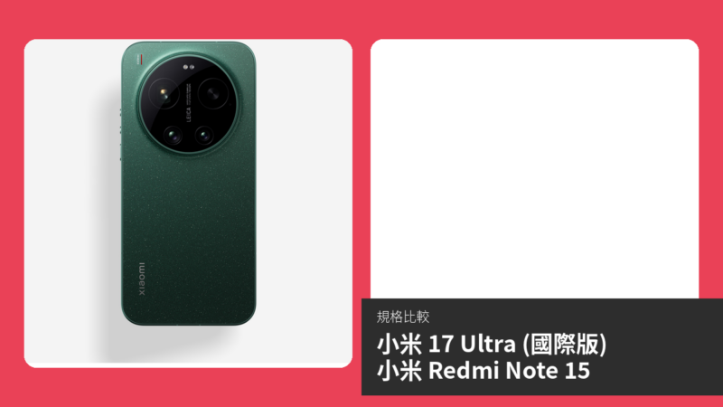 【手機比較】小米 17 Ultra (國際版) 與 小米 Redmi Note 15:規格表、效能、攝影功能