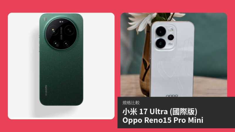 整體而言,小米 17 Ultra 作為較新旗艦,規格更強大,值得重度用戶升級;Oppo Reno15 Pro Mini 則是輕量高效選擇,各有定位。