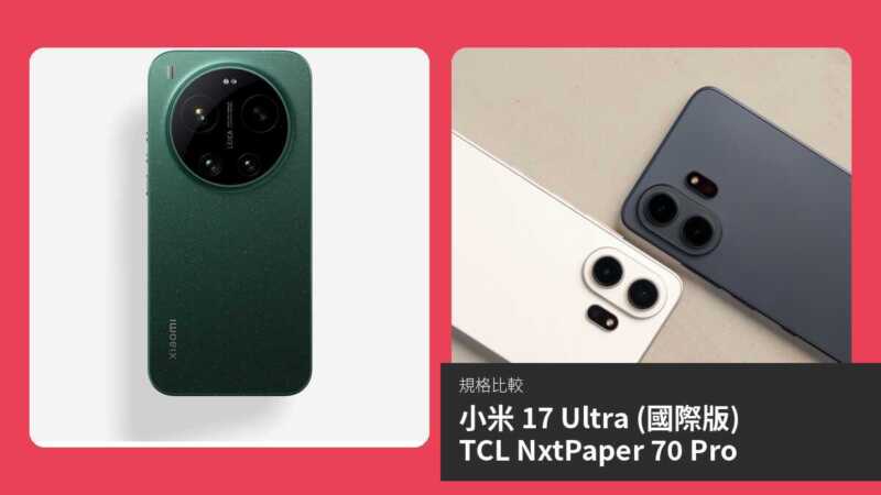 【手機比較】小米 17 Ultra (國際版) 與 TCL NxtPaper 70 Pro:規格表、效能、攝影功能
