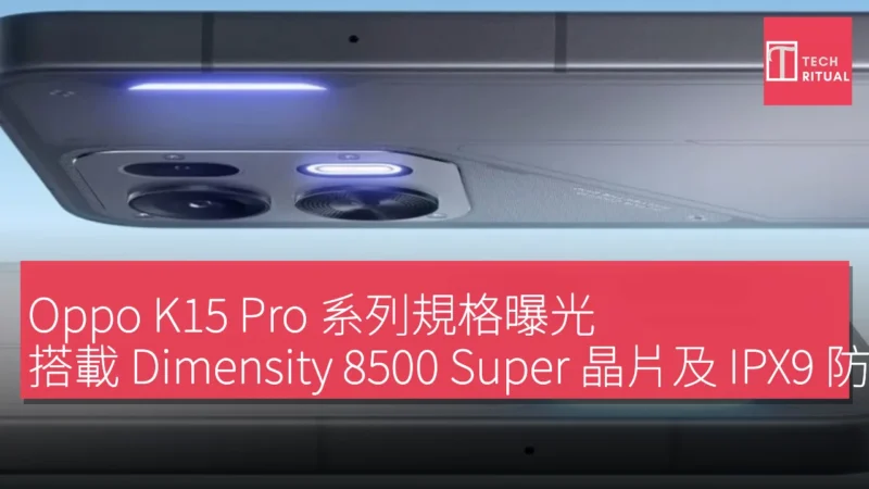 Oppo K15 Pro 系列規格曝光,搭載 Dimensity 8500 Super 晶片及 IPX9 防水風扇