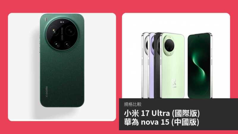 | 項目 | 小米 17 Ultra (國際版) | 華為 nova 15 (中國版) |