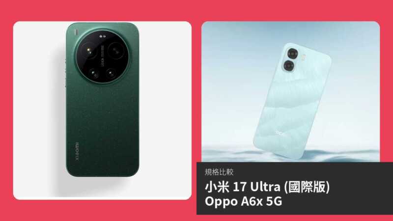 整體而言,小米 17 Ultra 作為旗艦機型規格遠超 Oppo A6x 5G,性價比高於入門定位。若無預算限制,小米為更好選擇;Oppo 適合輕度使用者。(約 1980 字)