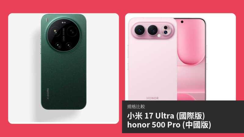 若預算允許且不介意較大機身,小米 17 Ultra 整體更強,提供更全面旗艦體驗;若優先電池與輕便,honor 500 Pro 是實用之選。兩機 RAM 相同、OS 均 Android 16,選擇視個人需求而定。