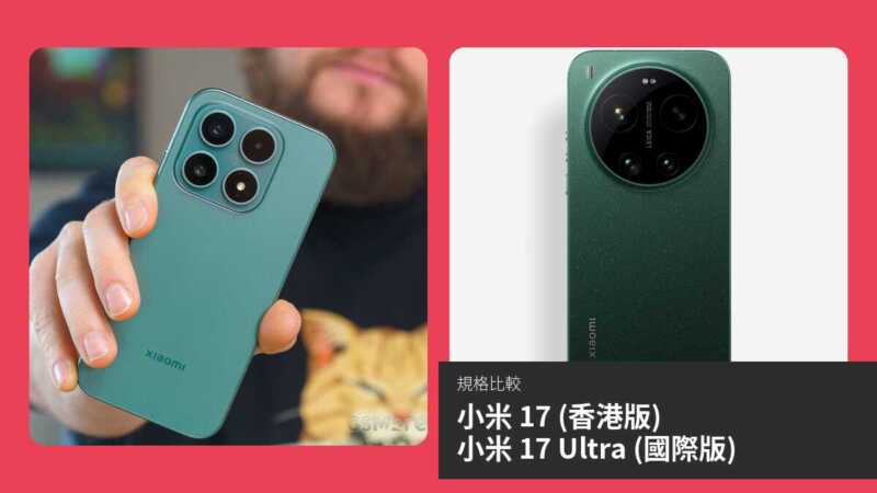 | 項目 | 小米 17 (香港版) | 小米 17 Ultra (國際版) |
