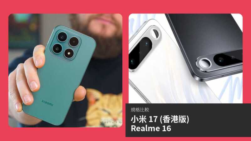 【手機比較】小米 17 (香港版) 與 Realme 16:規格表、效能、攝影功能
