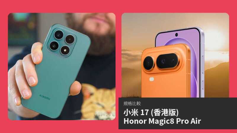 【手機比較】小米 17 (香港版) 與 Honor Magic8 Pro Air:規格表、效能、攝影功能