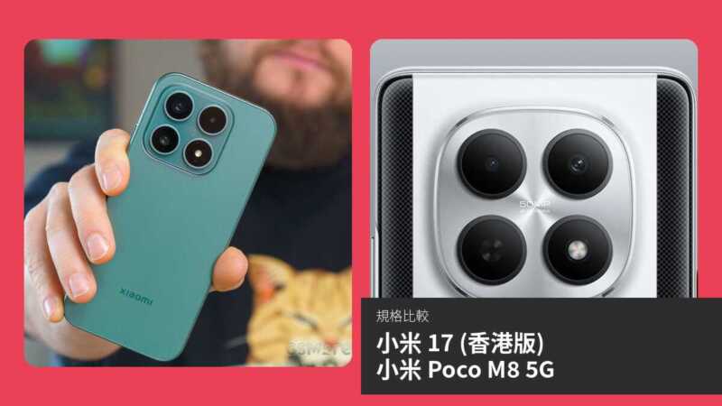 【手機比較】小米 17 (香港版) 與 小米 Poco M8 5G:規格表、效能、攝影功能