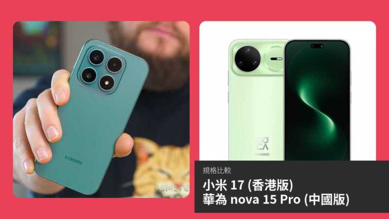 【手機比較】小米 17 (香港版) 與 華為 nova 15 Pro (中國版):規格表、效能、攝影功能