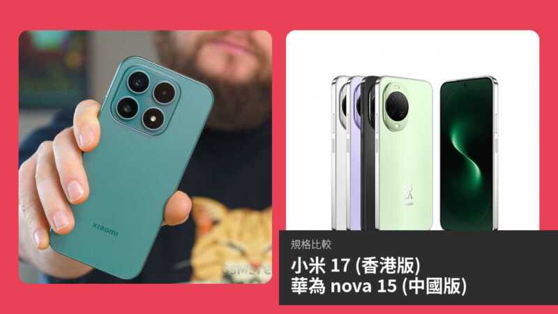 | 項目 | 小米 17 (香港版) | 華為 nova 15 (中國版) |