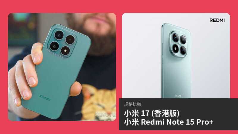 | 項目 | 小米 17 (香港版) | 小米 Redmi Note 15 Pro+ |