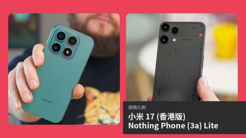 【手機比較】小米 17 (香港版) 與 Nothing Phone (3a) Lite:規格表、效能、攝影功能