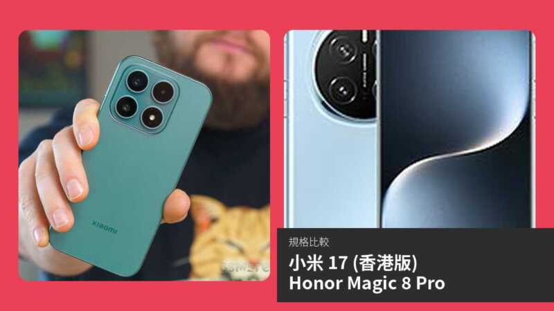 小米 17 (香港版) 作為小米最新旗艦機款,以強大規格和 Leica 影像系統見稱,而 Honor Magic 8 Pro 則是 Honor 上一代高端產品,搭載類似頂級處理器。本文將客觀比較兩款手機在屏幕、效能、攝影、連接性等方面的表現,幫助香港消費者選擇最適合的型號。兩機均針對高端市場,售價相若,但細節差異值得深究。