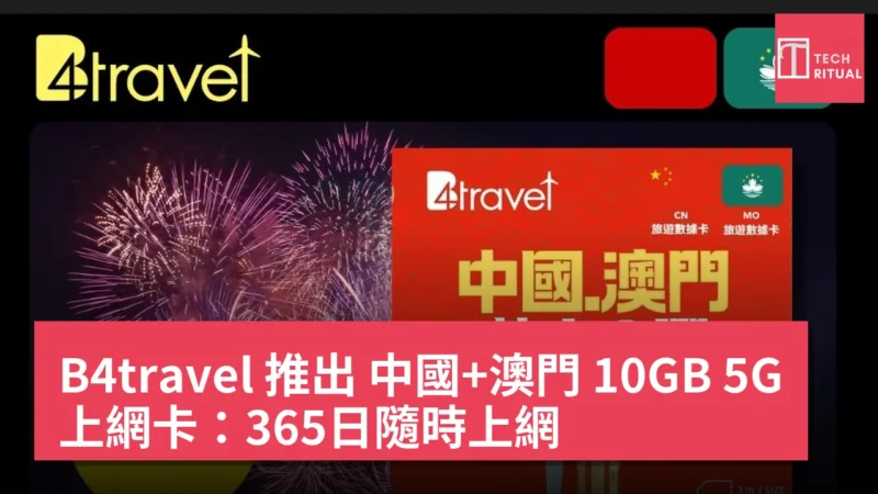 B4travel 中國+澳門 10GB 5G 上網卡(365日/年卡)