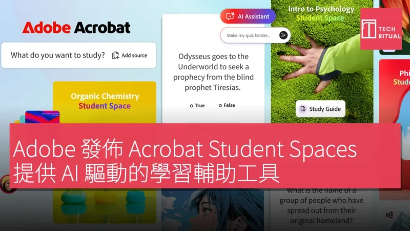 Adobe 今日在測試階段推出了 Acrobat Student Spaces,旨在幫助學生更快、更輕鬆及更有效地學習。這個基於人工智能的平台是與學生協作開發的,提供多種生成學習輔助工具的方法,幫助學生進行課業。