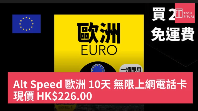 Alt Speed 歐洲 10天 無限上網電話卡 現價 HK$226.00
