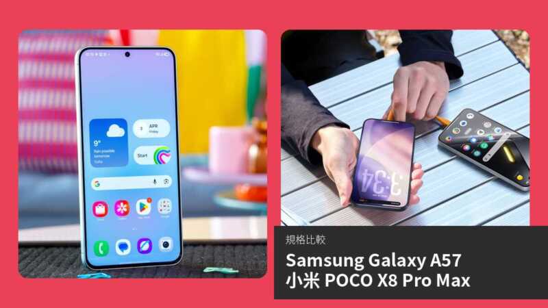 Samsung Galaxy A57 作為三星中階機種,將於 2026 年 4 月發佈,帶來最新的 Exynos 處理器與 One UI 介面。小米 POCO X8 Pro Max 則是較早推出的效能導向手機,以強大電池與高刷新率螢幕見長。本文將兩款手機進行全面比較,從規格到實際應用,幫助讀者了解哪款更適合日常使用、遊戲或攝影需求。透過規格對比與詳細分析,我們將客觀評估各自優勢。