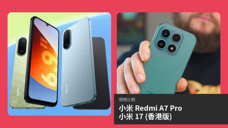 【手機比較】小米 Redmi A7 Pro 與 小米 17 (香港版):規格表、效能、攝影功能